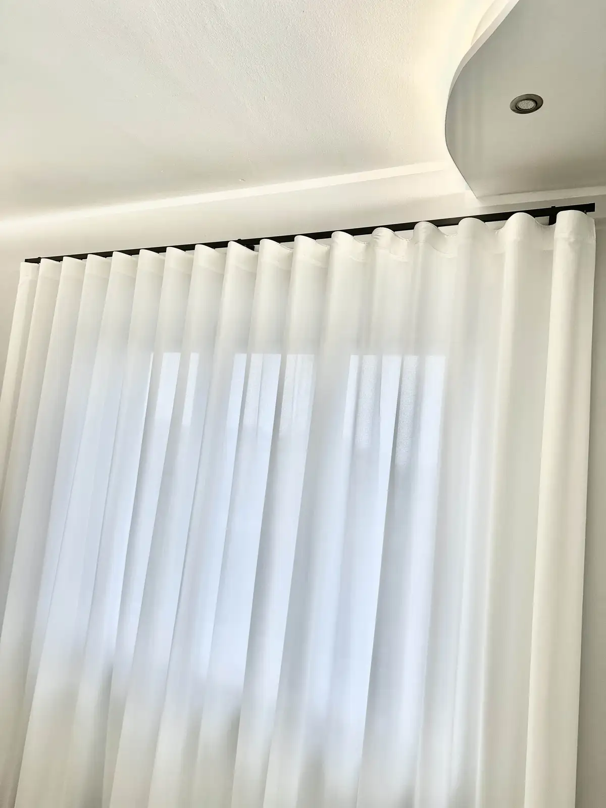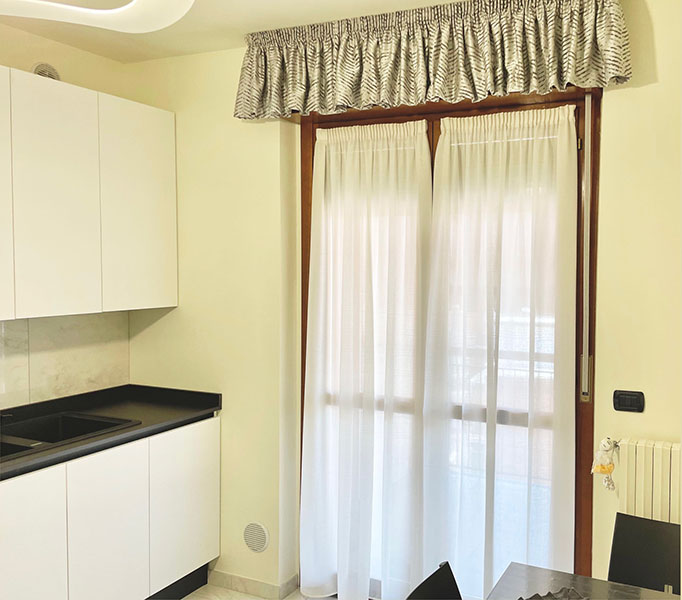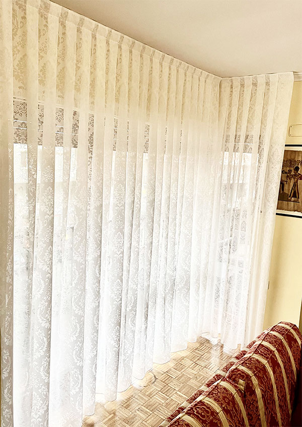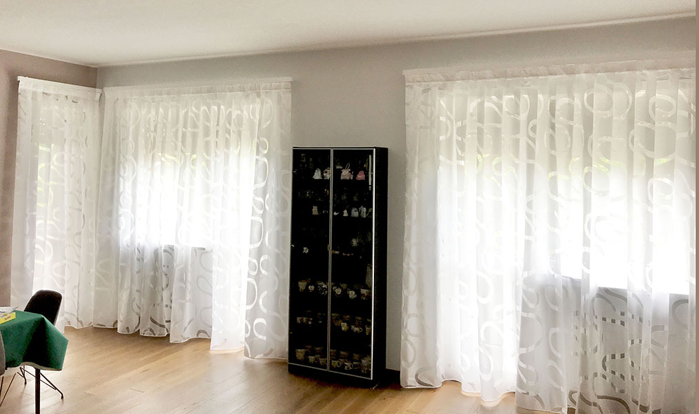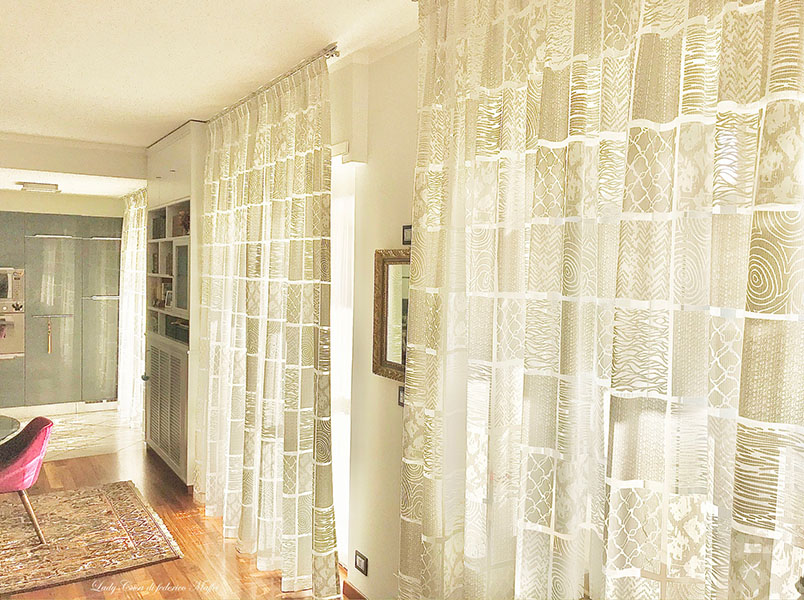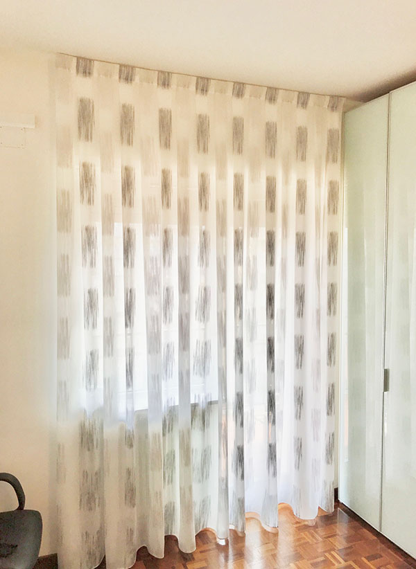 Le tende arricciate si possono posizionare “a soffitto” mediante binari a scomparsa (o all’americana),