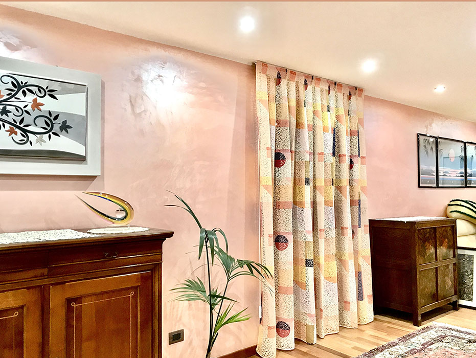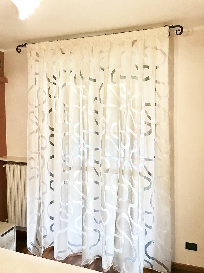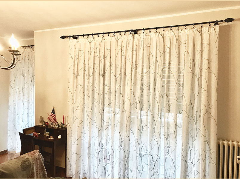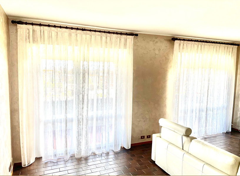 oppure “a parete” utilizzando reggi tenda decorativi che possono essere bastoni in acciaio, legno, ferro battuto , alluminio o binari decorativi.