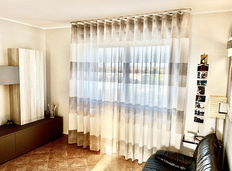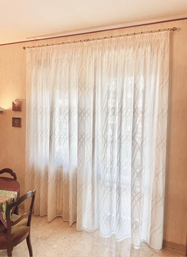 Anche qui ci sono diverse possibilità di scelta: pieghe consecutive, pieghe baciate, pieghe a caramella, pieghe a cannoli o arricciatura semplice. Ognuna di queste opzioni conferirà alla tenda un tipo di caduta diversa assecondando il gusto del cliente.