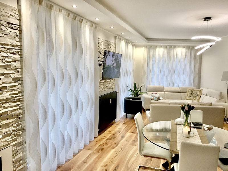 Le tende arricciate si possono adattare a tutti gli ambienti, da quelli più classici a quelli più moderni, pertanto la scelta del tessuto deve essere adeguata allo stile ed all’arredamento dell’ambiente.