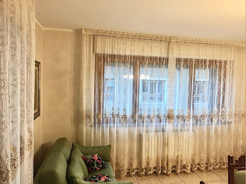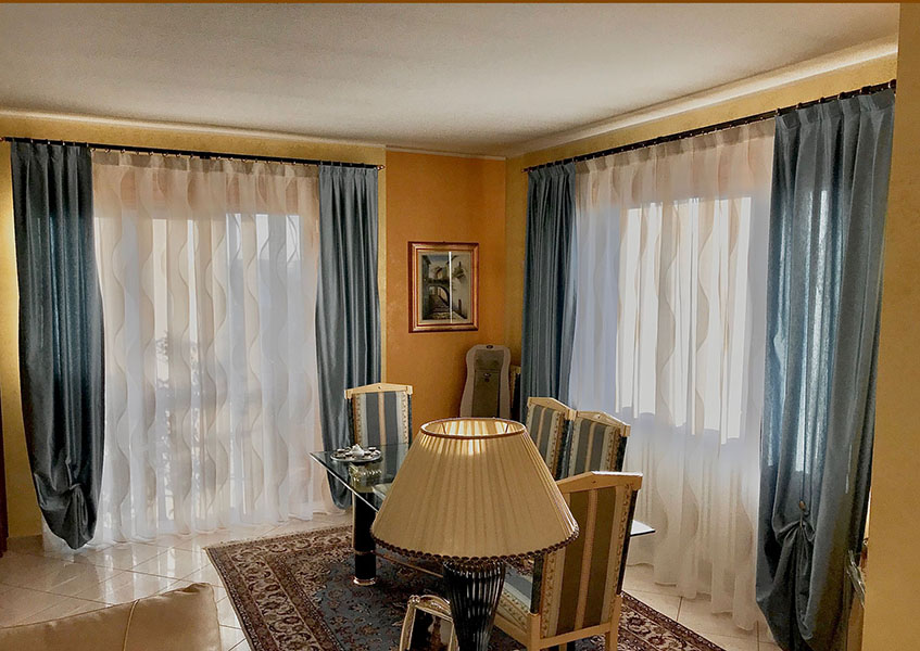 Ad esempio : In un ambiente in stile classico od arte povera sono molto indicati i pizzi, i tulle ricamati, i tendaggi con inserti in Macramè, mentre negli spazi particolarmente ampi, è possibile realizzare “tendaggi doppi” in cui si preveda una tenda leggera da sfondo, solitamente in tinta unita chiara, alla quale si sovrappone un tendaggio più pesante colorato o lavorato e che si intoni all’arredamento.