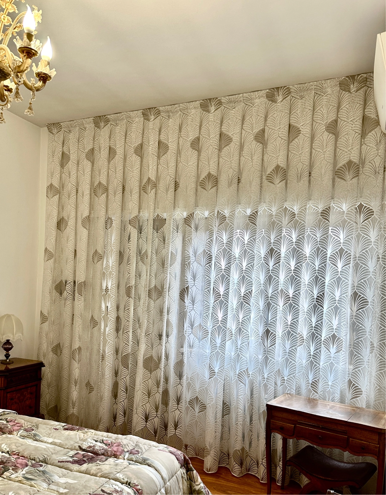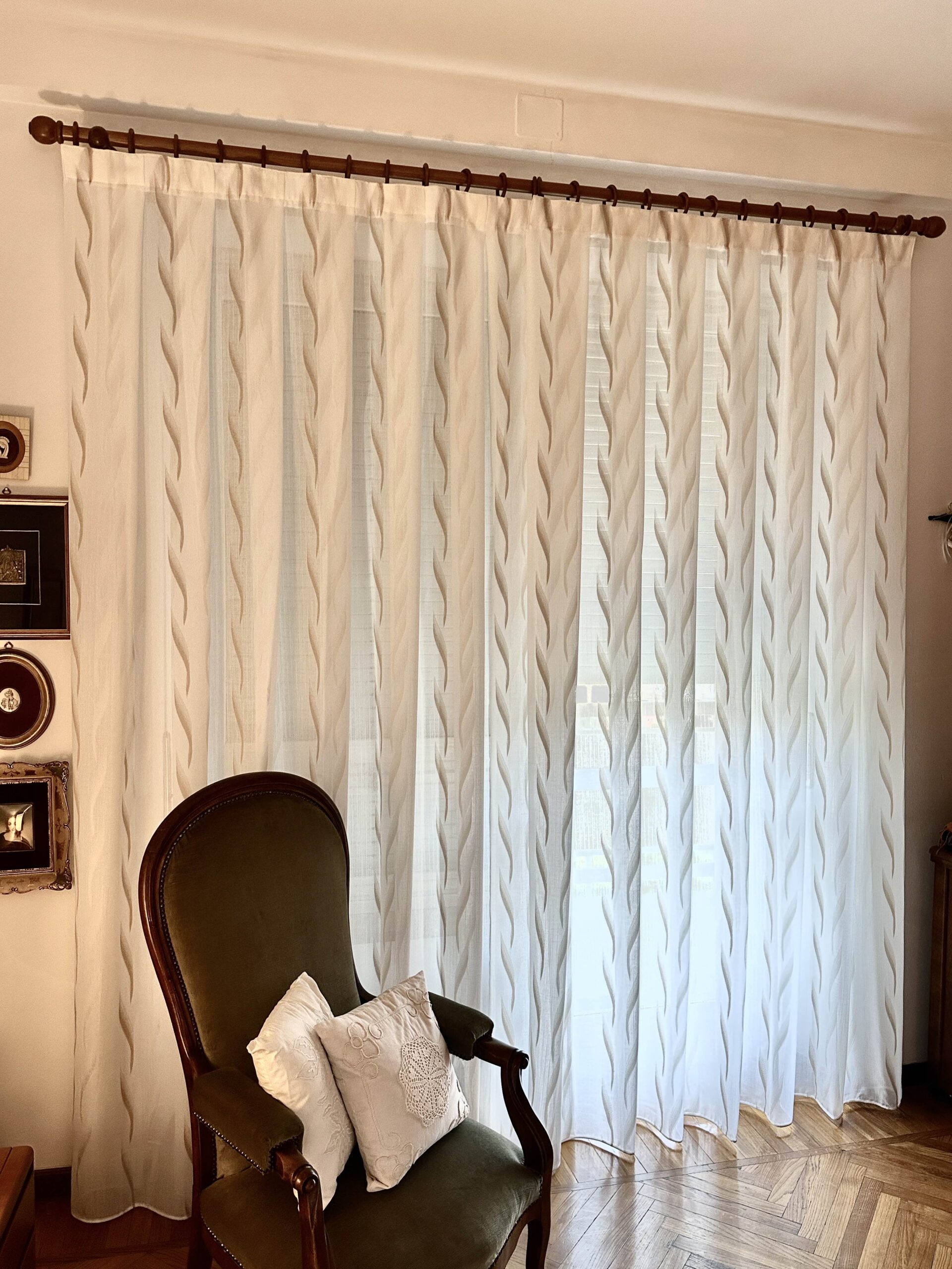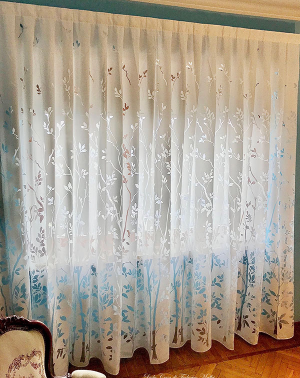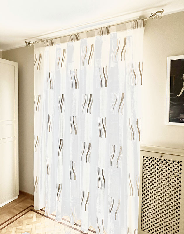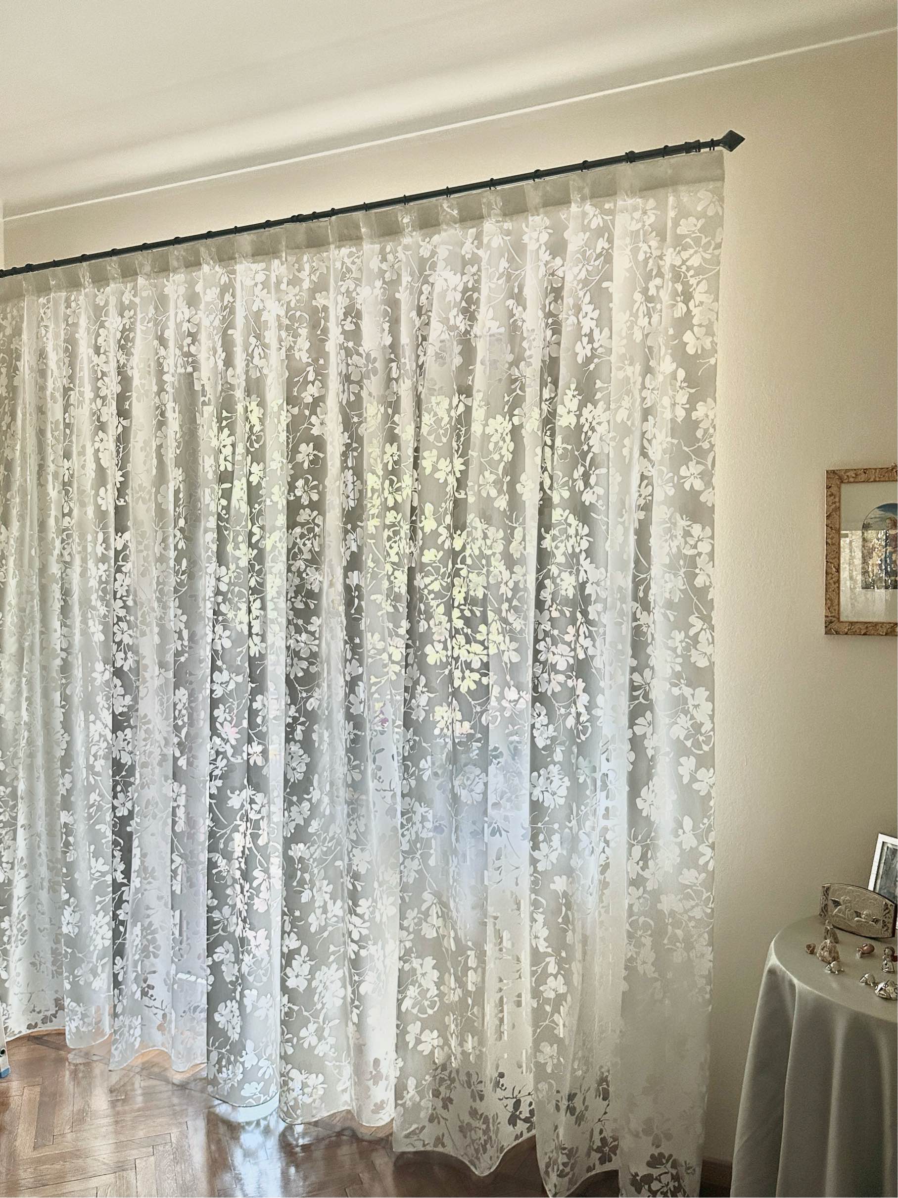 A differenza di quanto era d’uso fino Agli anni 70 , in cui si era soliti a coprire l’intera parete che accoglieva il vano luce, attualmente con le tende arricciate si copre, in larghezza, poco più del vano luce (Circa 10 / 25 cm per lato) e, a seconda di tale misura, si possono suddividere a metà (telo dx e telo sx) o telo unico.